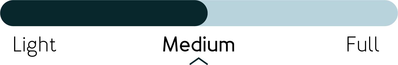 Balanced flavor with more body and richness than a light body, notes of chocolate, nuttiness, and fruitiness.