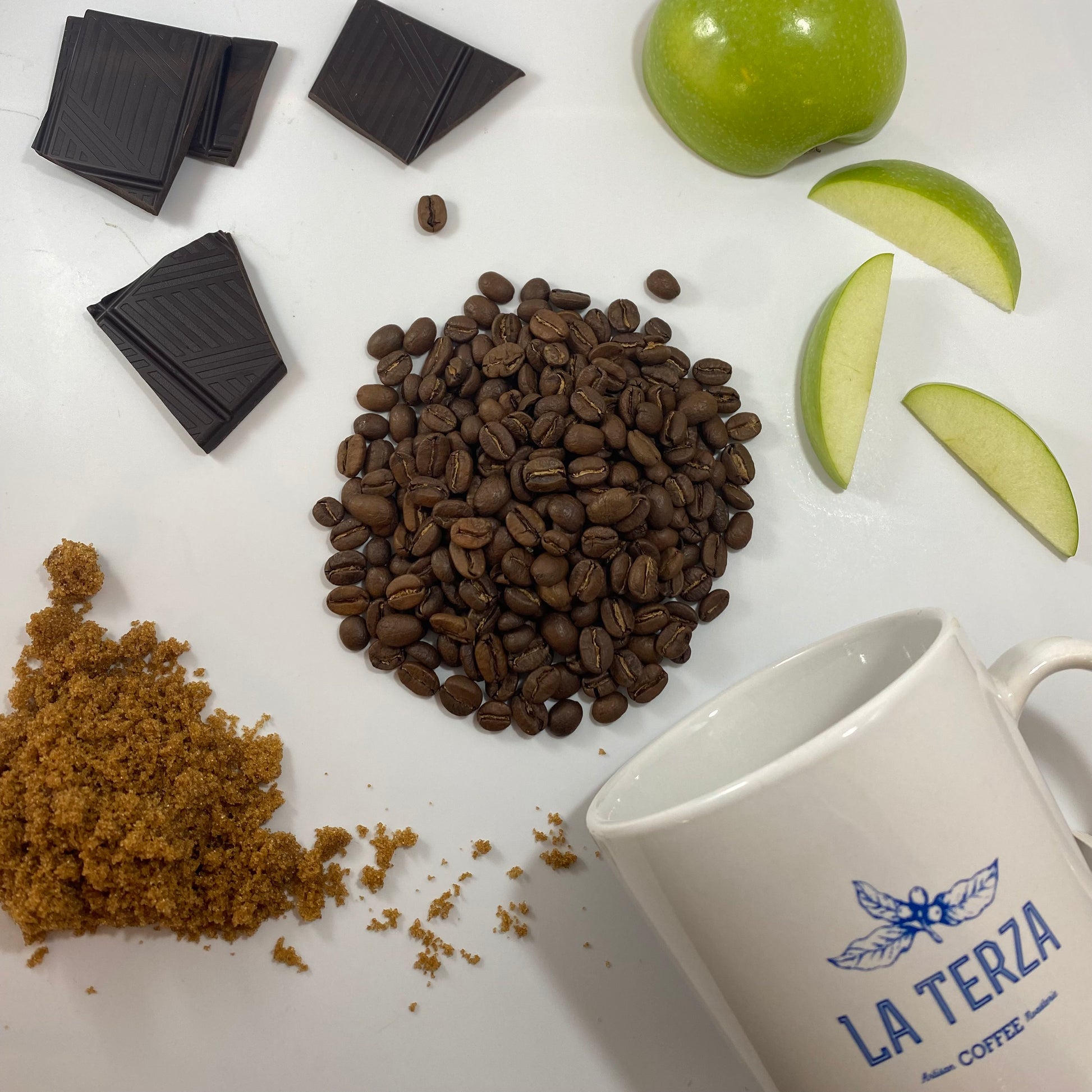 Bold and intense flavor, heavier body, and syrupy texture, notes of dark chocolate, caramel, and smokiness.