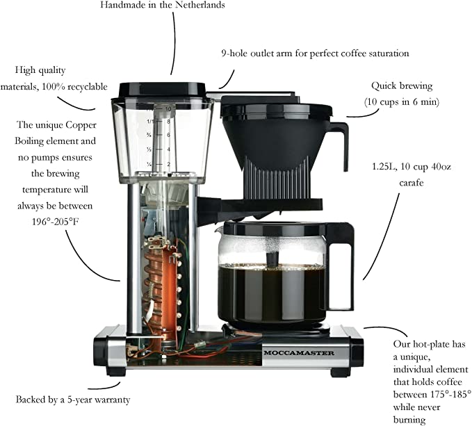 The selector switch on the KBGV Select allows you to choose between brewing a half or full carafe. The brewing speed and hotplate temperature adjust according to your choice, brewing either amount to the golden cup standard. The brew basket automatically stops the flow of coffee when removing the carafe. All glass carafe brewers feature a hotplate with an independent heating element that holds your coffee at the perfect temperature.